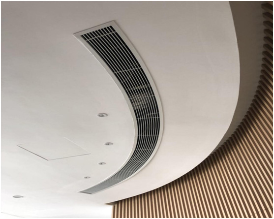 本展廳為敞開區域,空間內沒有具體隔斷,因此在空調選型和分布位置上需要參考實際吊頂造型。本展廳原始層高為4.6米,主梁下為3.4米,現吊頂完成面層高為3米,頂內層高較為充裕,我司建議使用風管式空調放置在吊頂內,可以最大程度不影響美觀度。