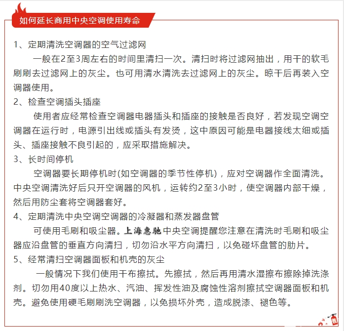 我們都經(jīng)常見(jiàn)到中央空調(diào),商場(chǎng)、超市等等大型場(chǎng)所,不同于家用小型中央空調(diào),商用中央空調(diào)需要馬力十足。大家都知道商用中央空調(diào)實(shí)用的時(shí)間比較長(zhǎng)。那么,如果在這么長(zhǎng)的時(shí)間內(nèi)保證商用中央空調(diào)的制冷、制暖效果應(yīng)該如何做呢?接下來(lái)惠馳小編就來(lái)給大家簡(jiǎn)單介紹一下商用中央空調(diào)有哪些分類以及如何延長(zhǎng)商用中央空調(diào)使用壽命。
