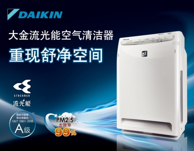 大金流光能空氣凈化器于2009年在中國國內發(fā)布,憑借其成熟的產(chǎn)品以及技術迅速占據(jù)了空氣凈化器的市場,目前市場占有率已到達80%。